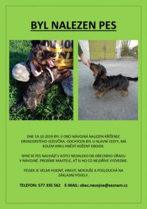 V sobotu 19. října 2019 byl v obci Návojná nalezen kříženec drsnosrstého jezevčíka. Byl odchycen u hlavní cesty, kolem krku má hnědý kožený obojek.