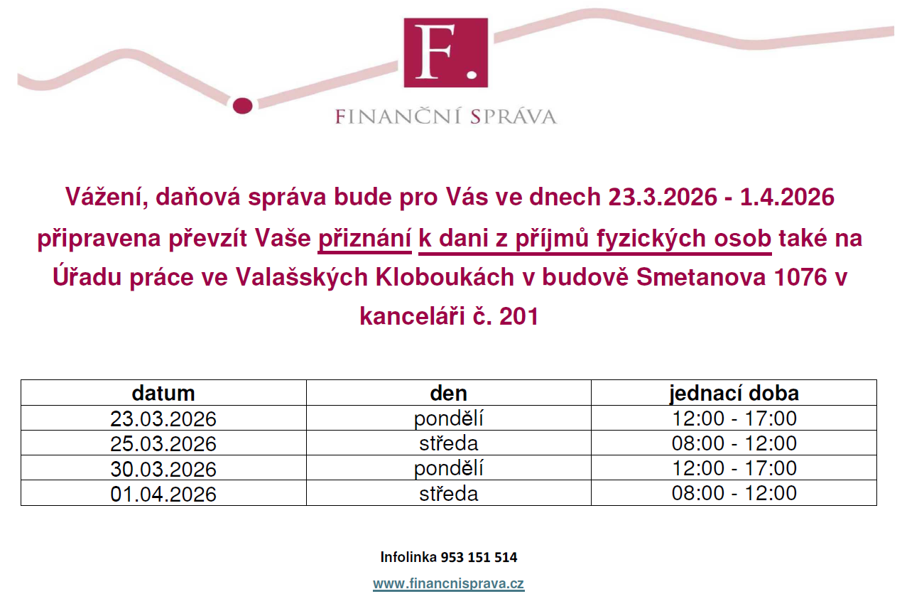 Daňové přiznání lze podat ve Valašských Kloboukách