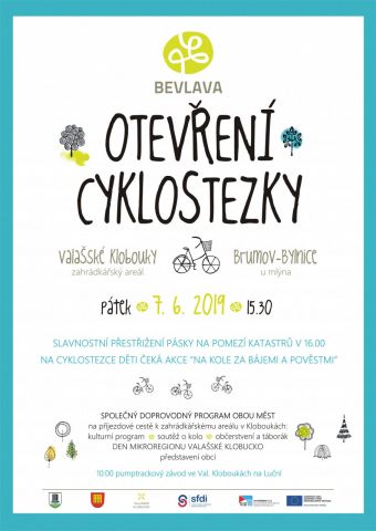 V pátek 7.června 2019 se uskuteční otevření cyklostezky BEVLAVA. Slavnostní přestřižení pásky na pomezí katastrů Valašských Klobouk a Brumova-Bylnice proběhne v 16:00 hodin. Bude připraven bohatý kulturní program, táborák a soutěž o kolo. Zárověň proběhne prezentace obcí v rámci dnu mikroregionu Valašské Klobucko.