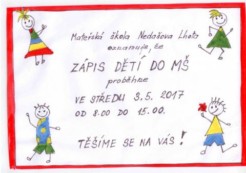 Zápis dětí do Mateřské školy Nedašova Lhota na školní rok