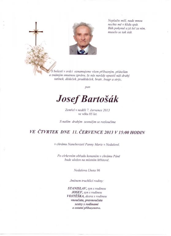 Bartošák Josef, Nedašova Lhota 96