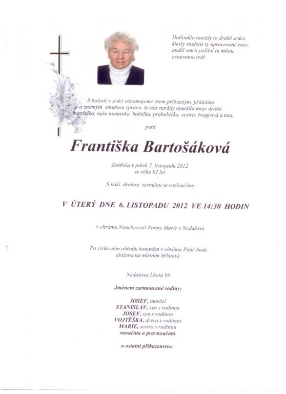 Bartošáková Františka, Nedašova Lhota 96