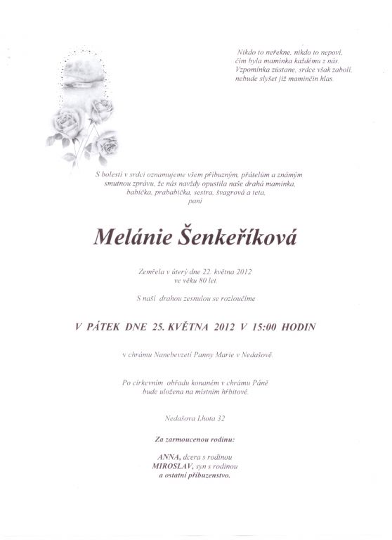 Šenkeříková Melanie, Nedašova Lhota 32